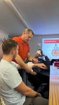Damit man nicht nur draußen auf der Straße gerüstet ist, wenn man Erste Hilfe leisten darf, sondern natürlich auch auch der Skipiste oder in einer anderen Situation, trafen sich die Teilnehmerinnen und Teilnehmer an zwei Tagen im Oktober, 10.10 und 13.10.2022, in unserem Vereinsstüberl in Wurmannsquick zum Kurs. Der Kurs wurde von Alois Hofer vom BRK Kreisverband Rottal-Inn geleitet. Durch ihn bekamen die Teilnehmer Einblicke ins richtige Verband anlegen, oder die stabile Seitenlage, oder wie man in der richtigen Reihenfolge einen Notruf bei einem Unfall absetzt. Wir bedanken uns bei ihm für die Leitung der Ausbildung unserer Teilnehmerinnen und Teilnehmer.